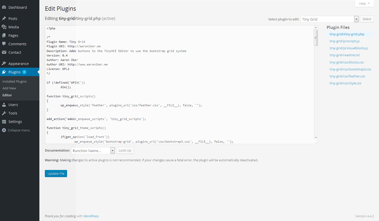 Installing Tiny Grid plugin