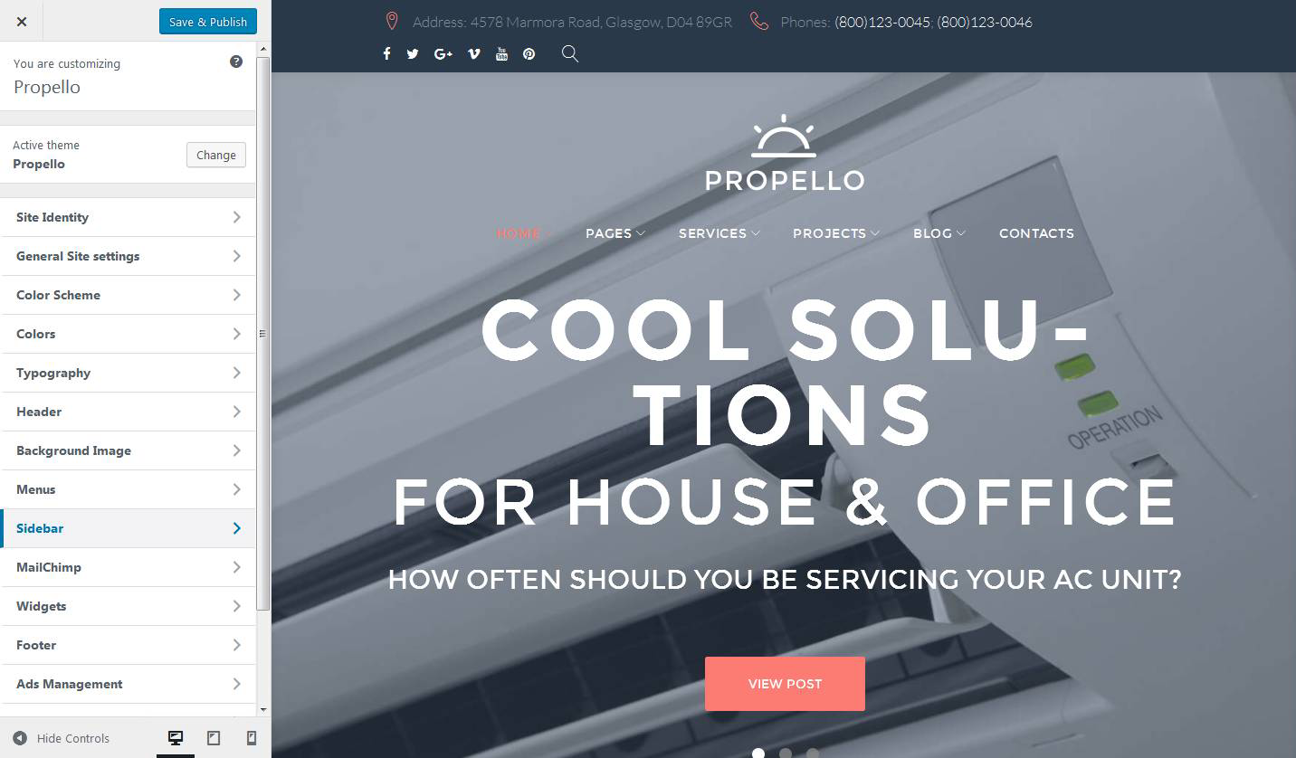 Then you can define the menu position and check the result with the help of the customizer tool.