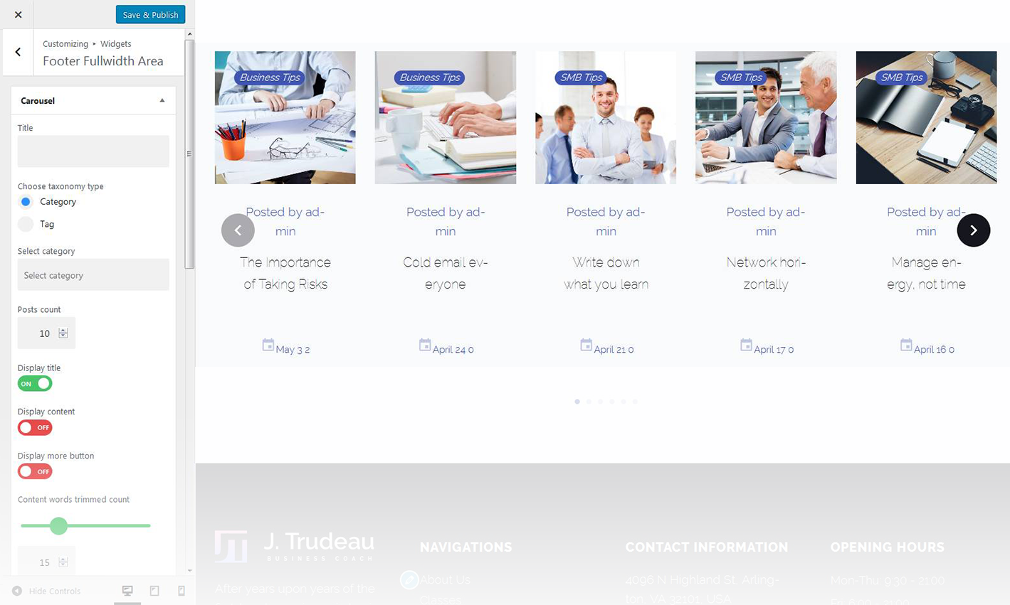 - Here you can define the number of slides / posts to display