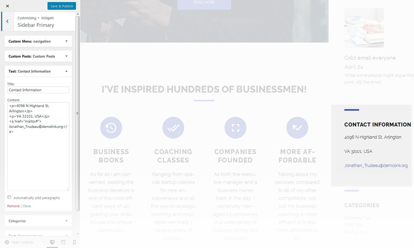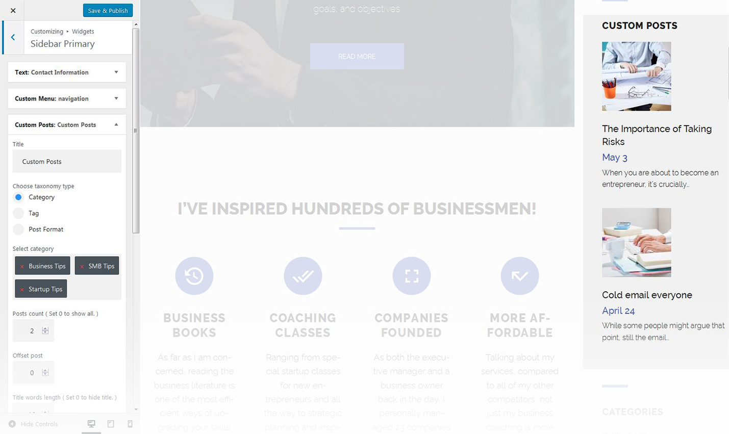 This widget is used to setup and display custom posts.
