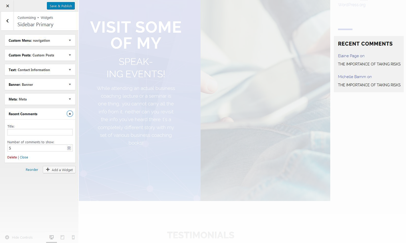 This widget is used to display the recent comments to the posts on the homepage.