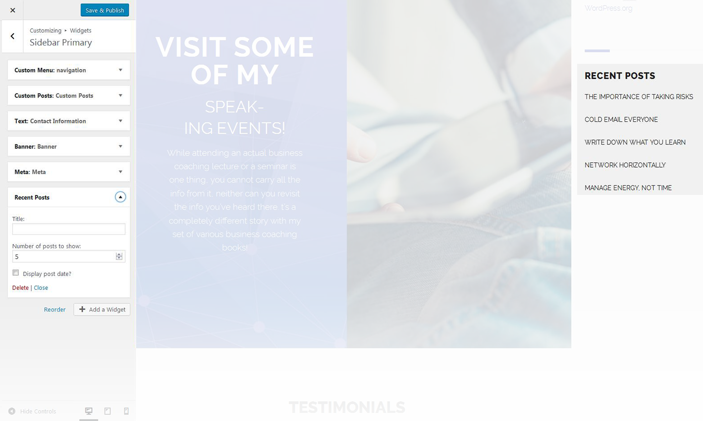 This widget is used to display recent posts on the homepage.