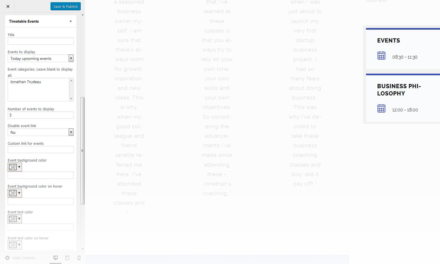 - You can select a user / author from a dropdown list to show on the page