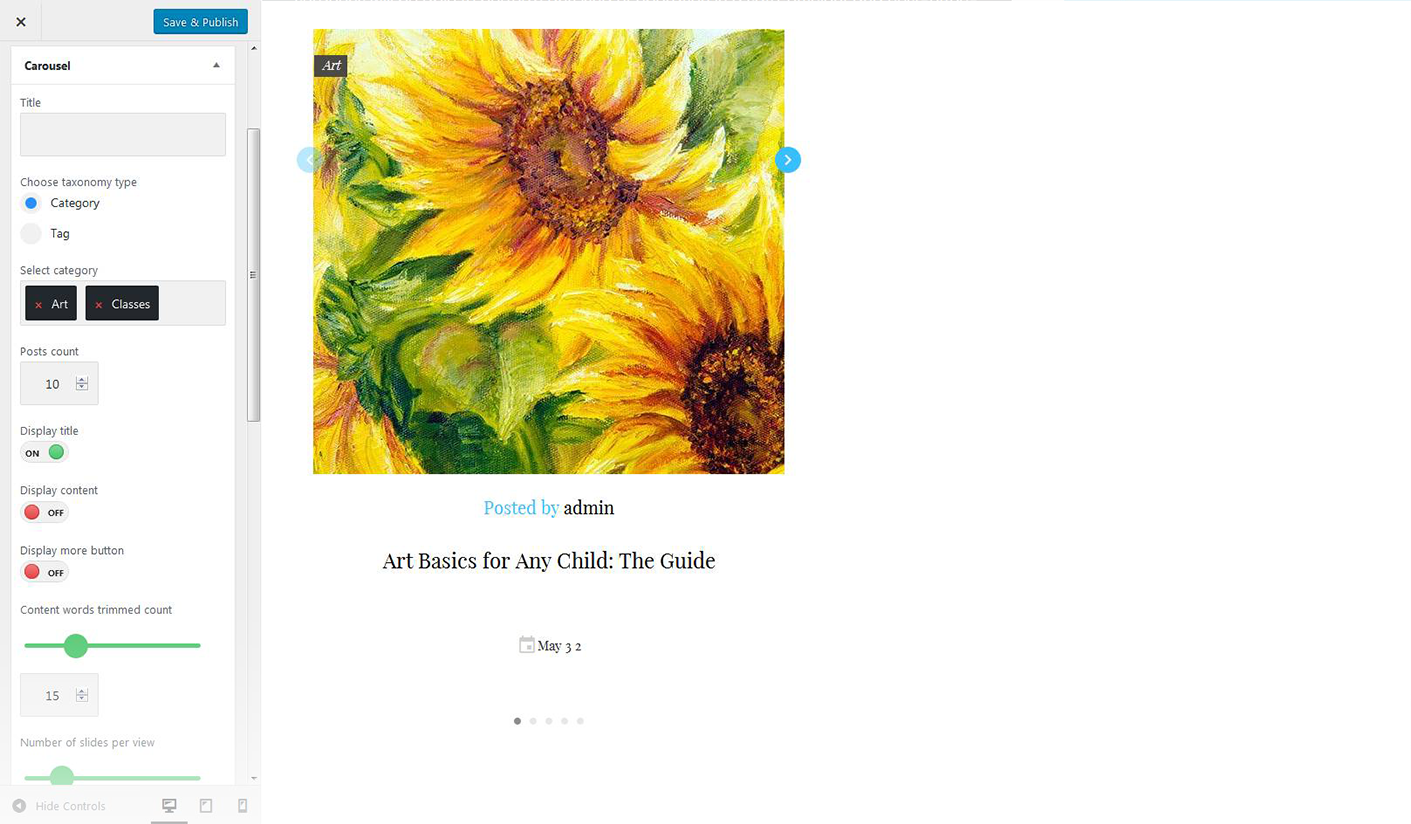 - Here you can define the number of slides / posts to display