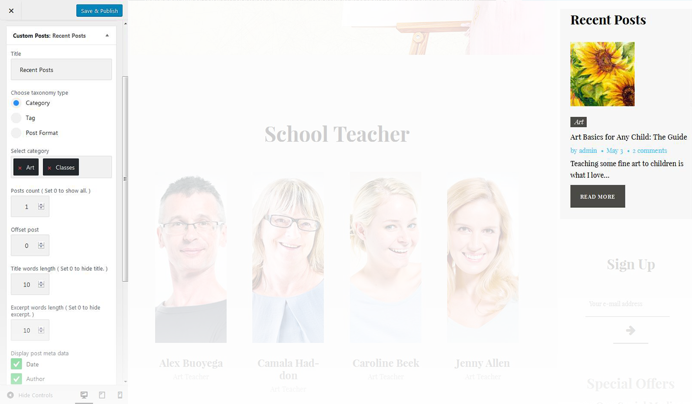 This widget is used to setup and display custom posts.