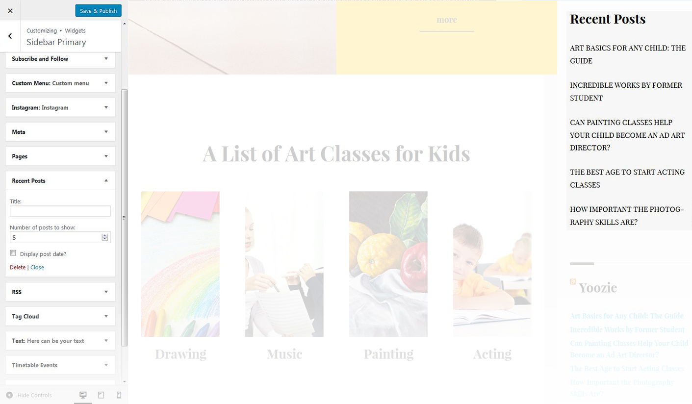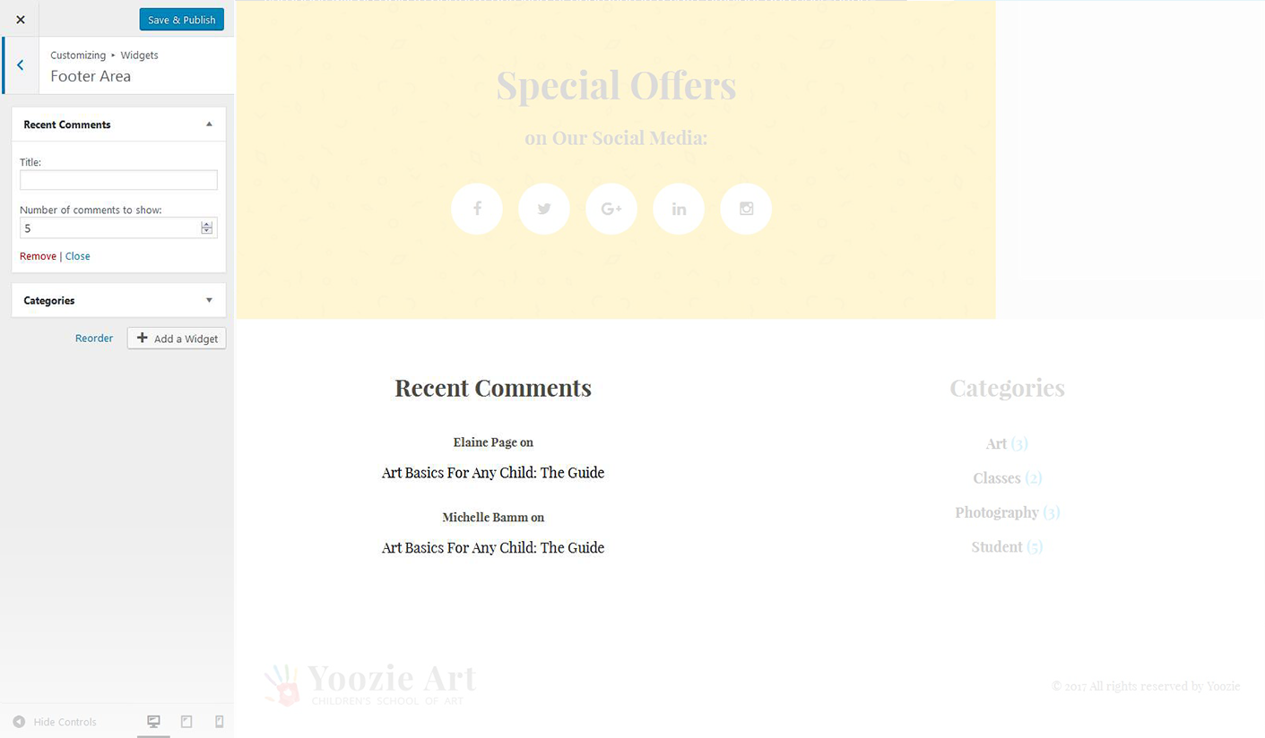 This widget is used to display the recent comments to the posts on the homepage.