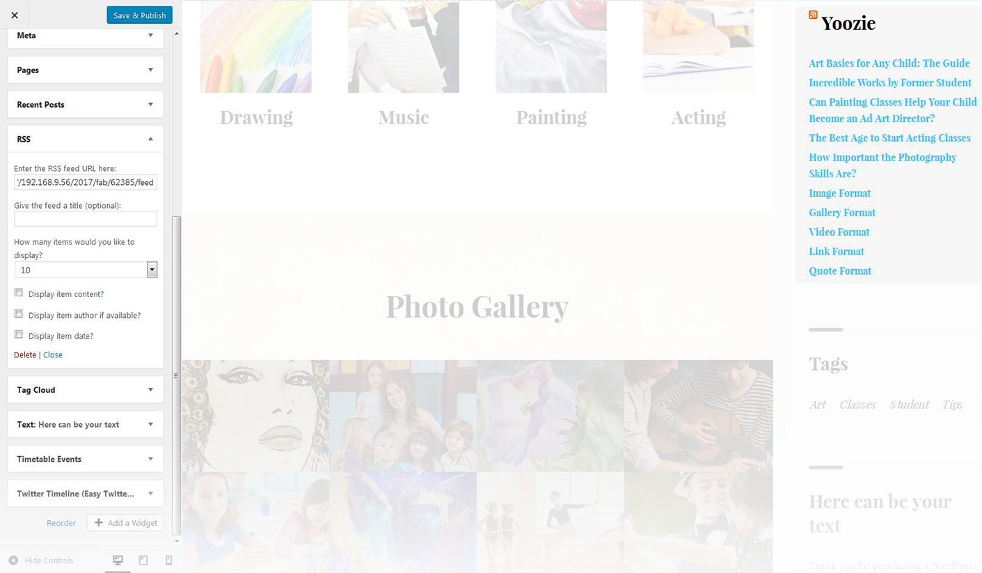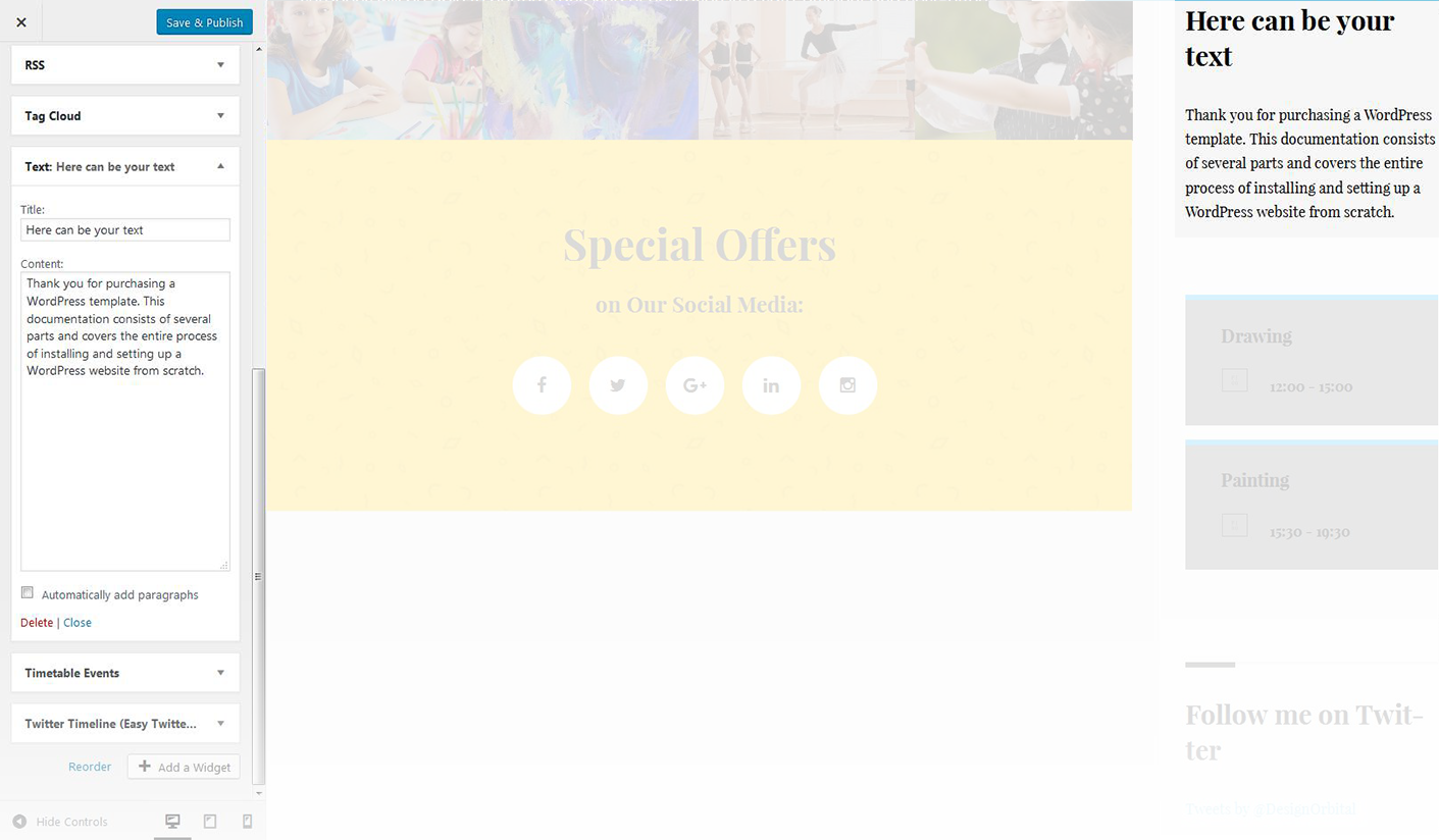 This widget is used to setup and display twitter feed box on the website.