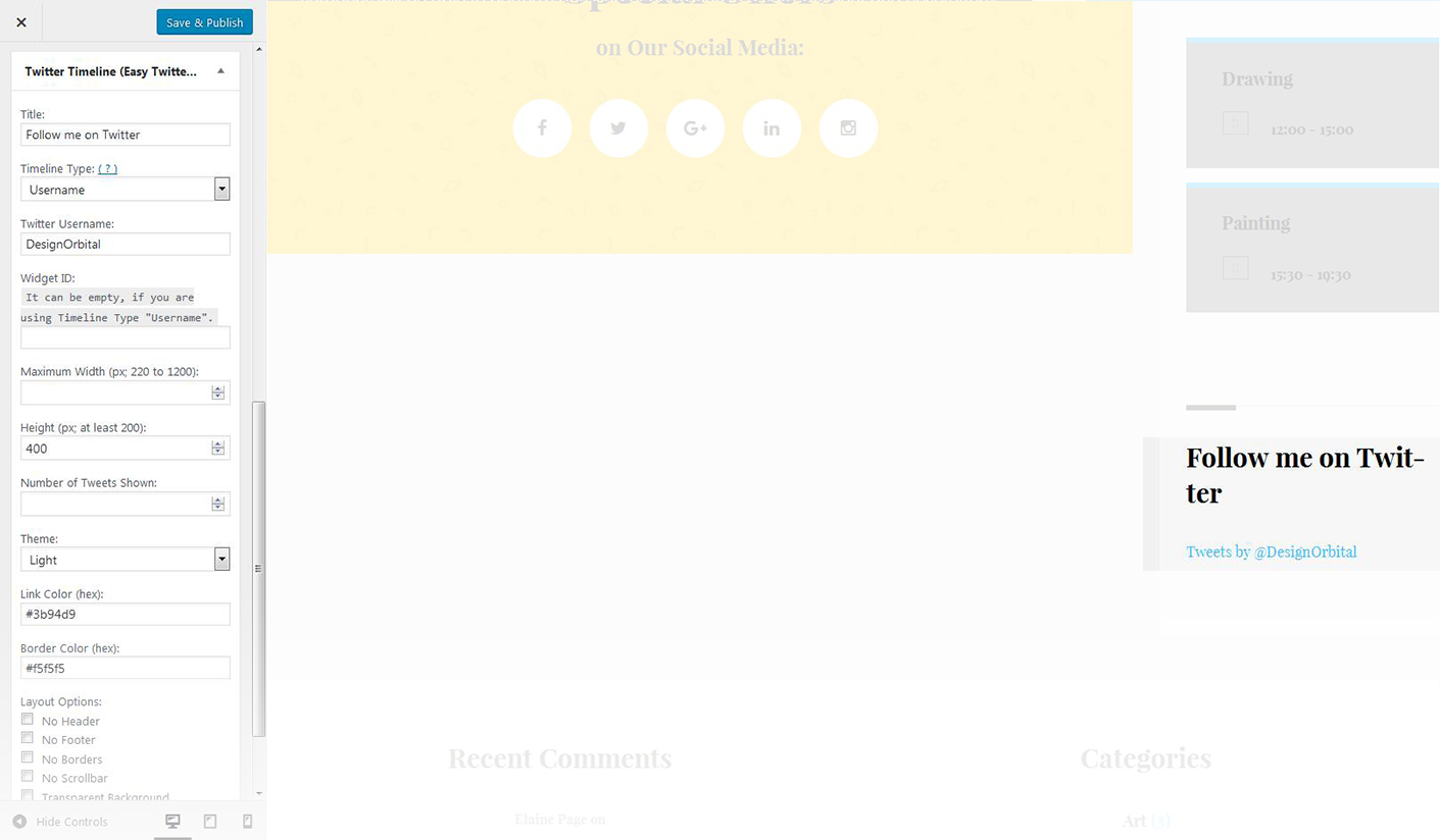 - Here you can select the theme for the twitter widget
