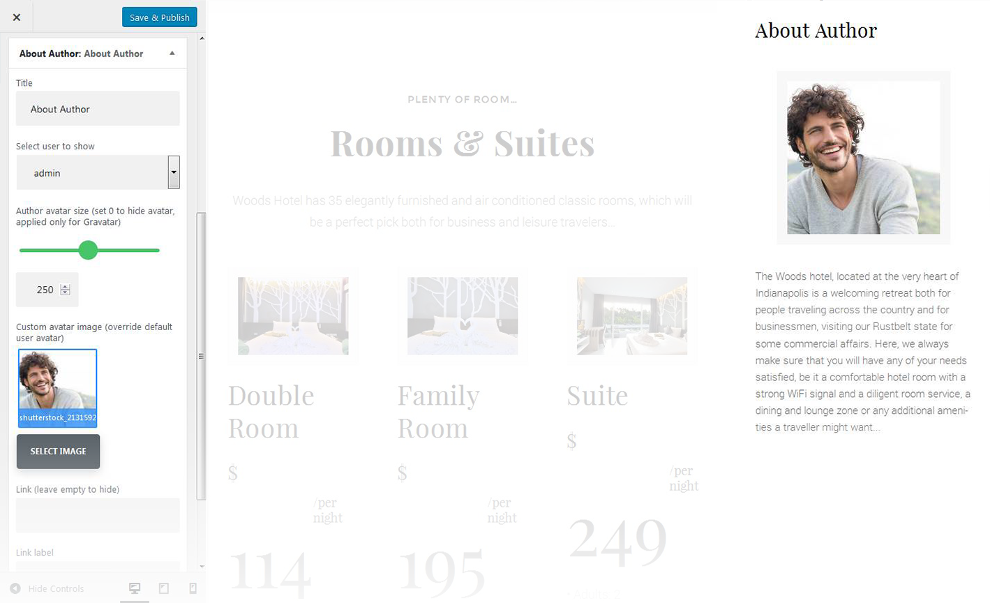 - You can select a user / author from a dropdown list to show on the page