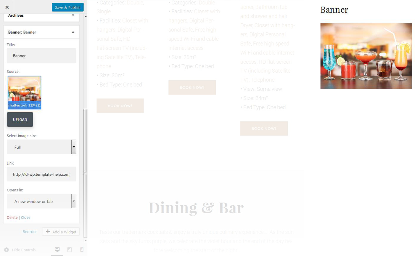 - This option allows you to add a link to a particular banner. Hover on a thumbnail in the customizer and click the button in the middle of it to specify the address