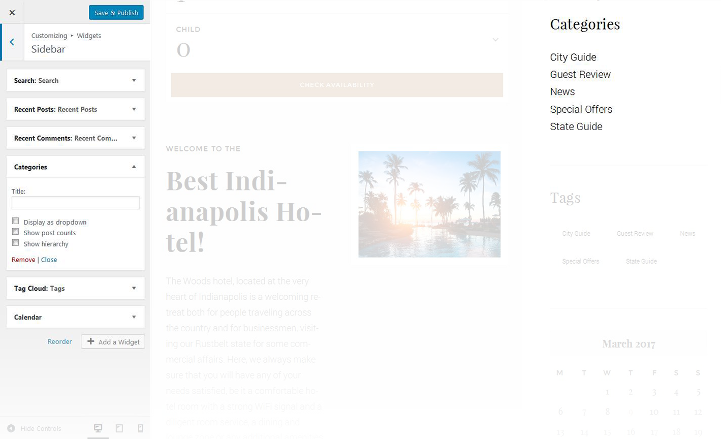 - Here you can define the number of columns to display category or tag content (up to 4)