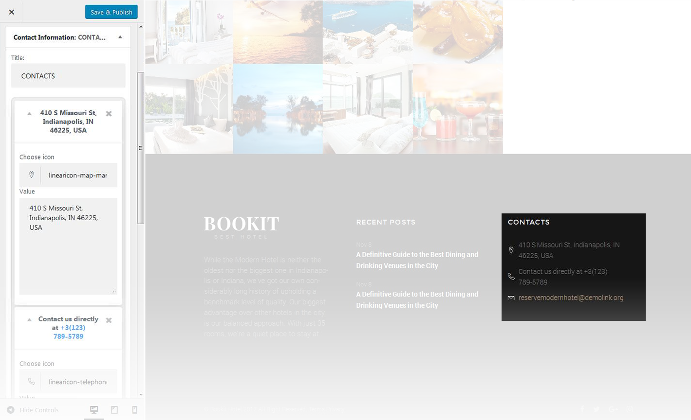 This widget is used to display contact information of the page.