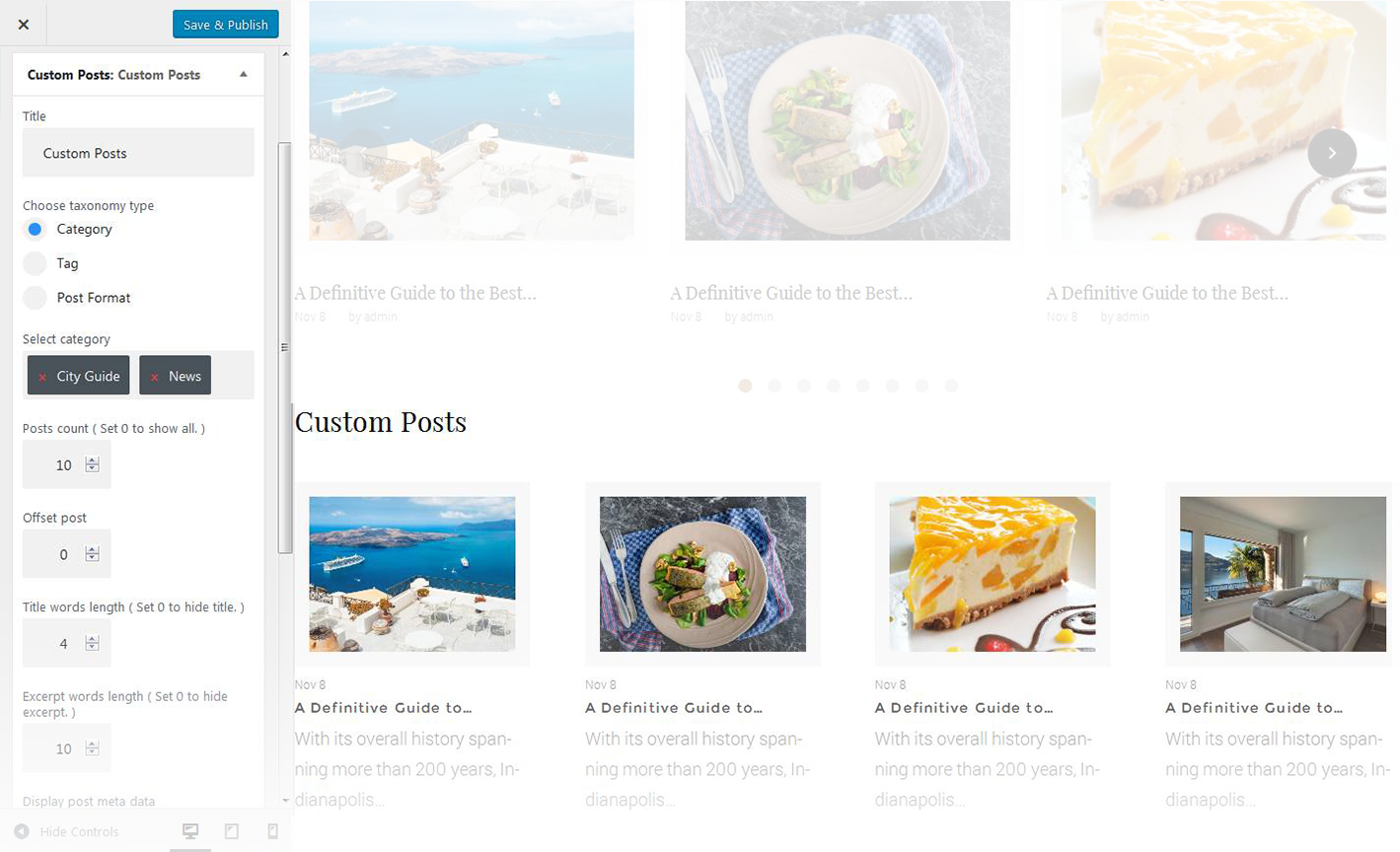 - Hide/Show post content below the carousel slide