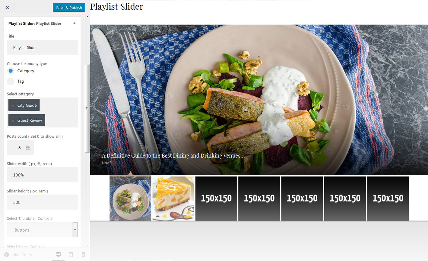 - Here you can define whether to Hide/Show slide thumbnails below the slider
