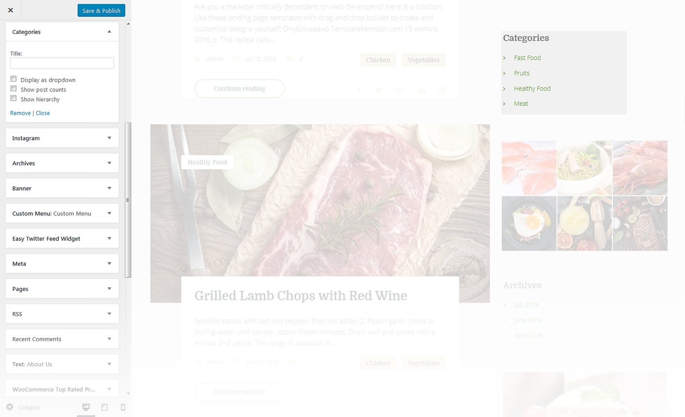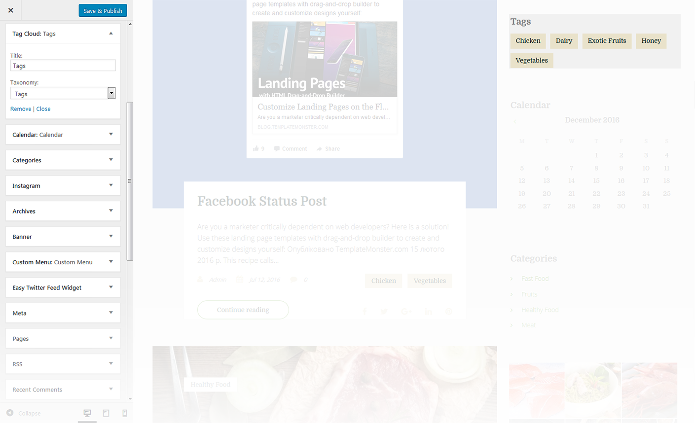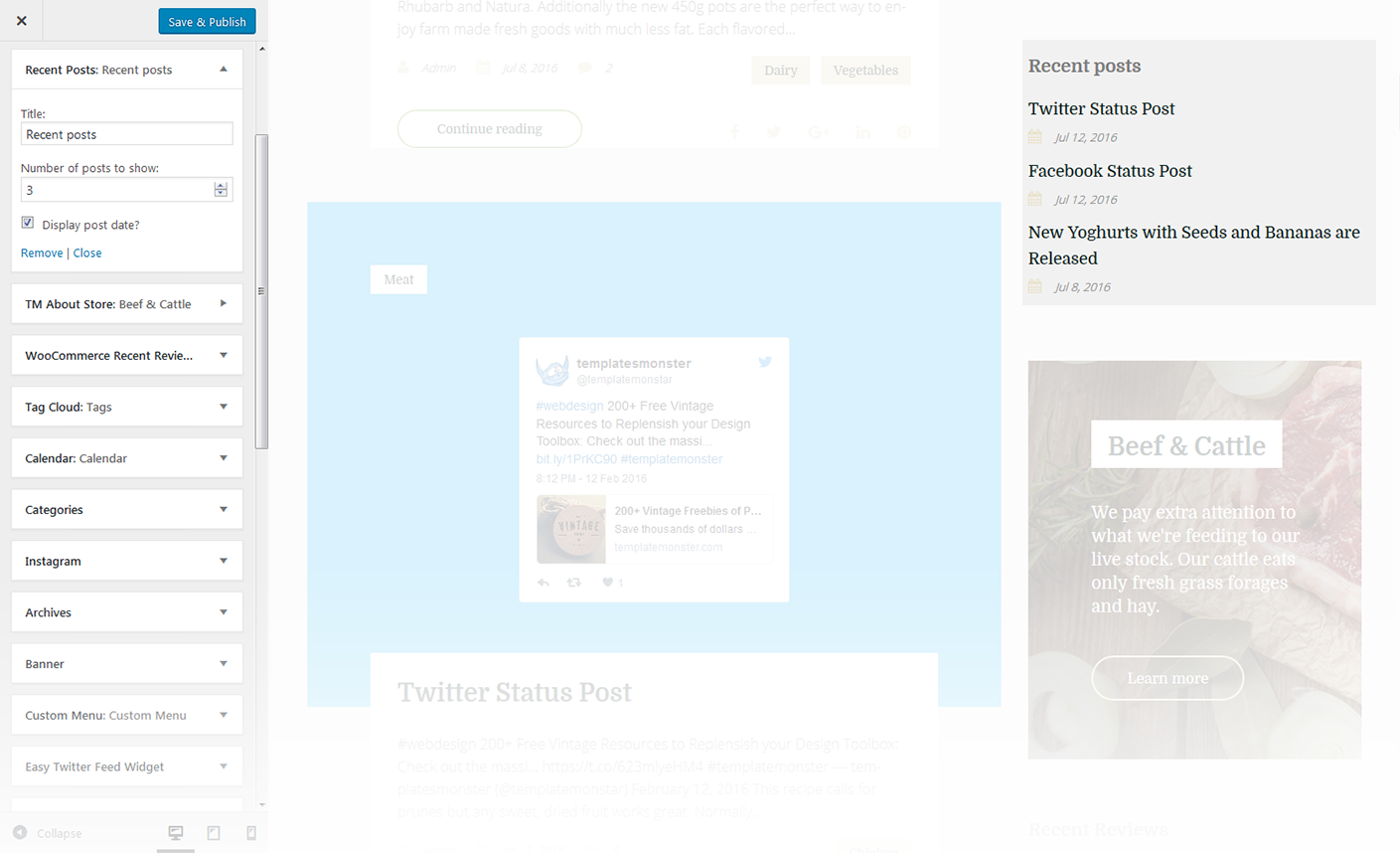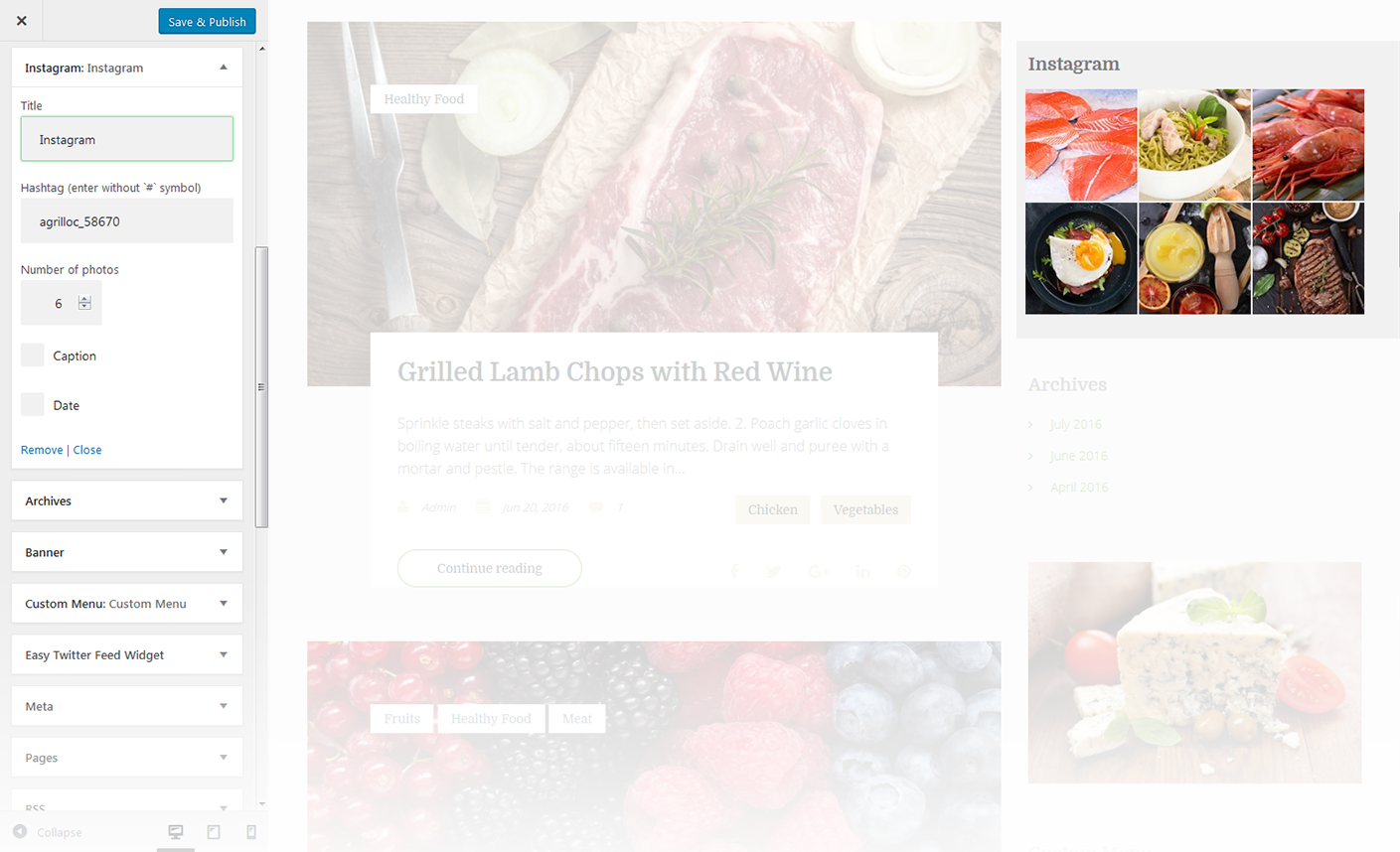 This widget is used to setup and display Instagram feed on the website.