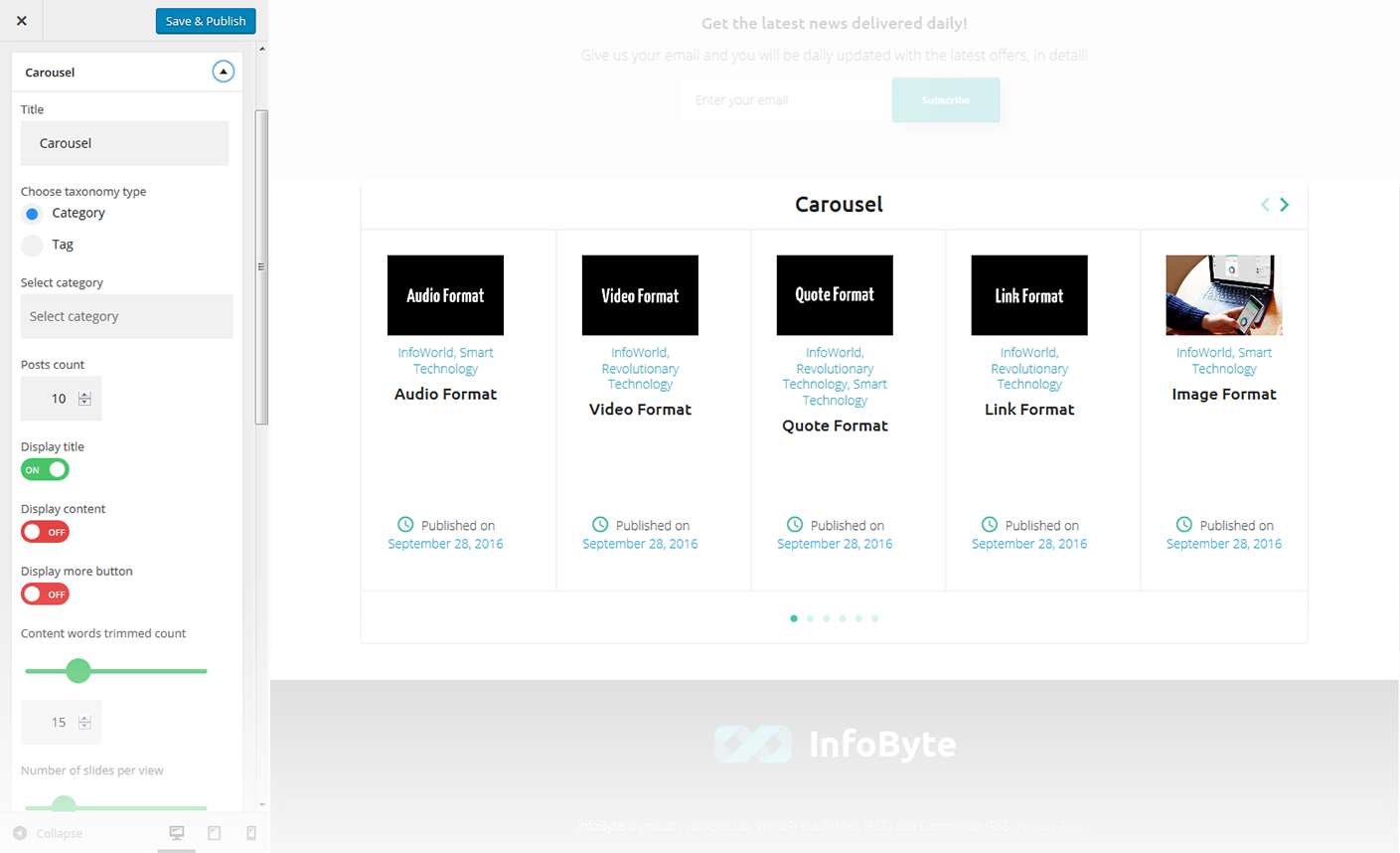 - This option allows you to add a link to a particular banner. Hover on a thumbnail in the customizer and click on the button at the middle of it to specify the address