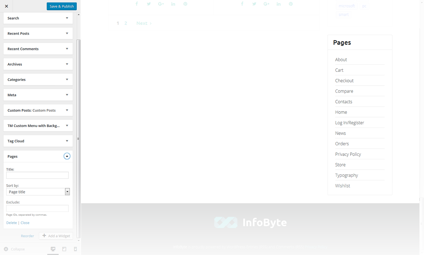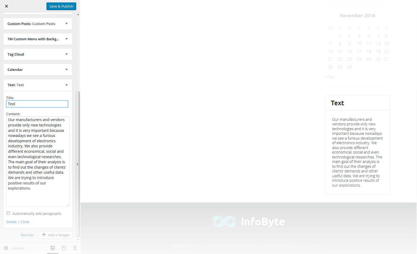 The widget allows you to display various text blocks, you can also use it to insert the shortcodes.