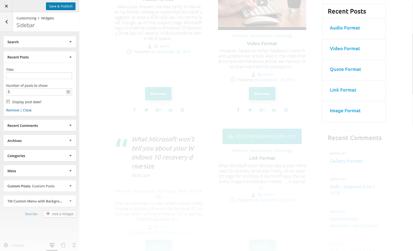- Under the image thumbnails in the customizer you can switch between several layout types