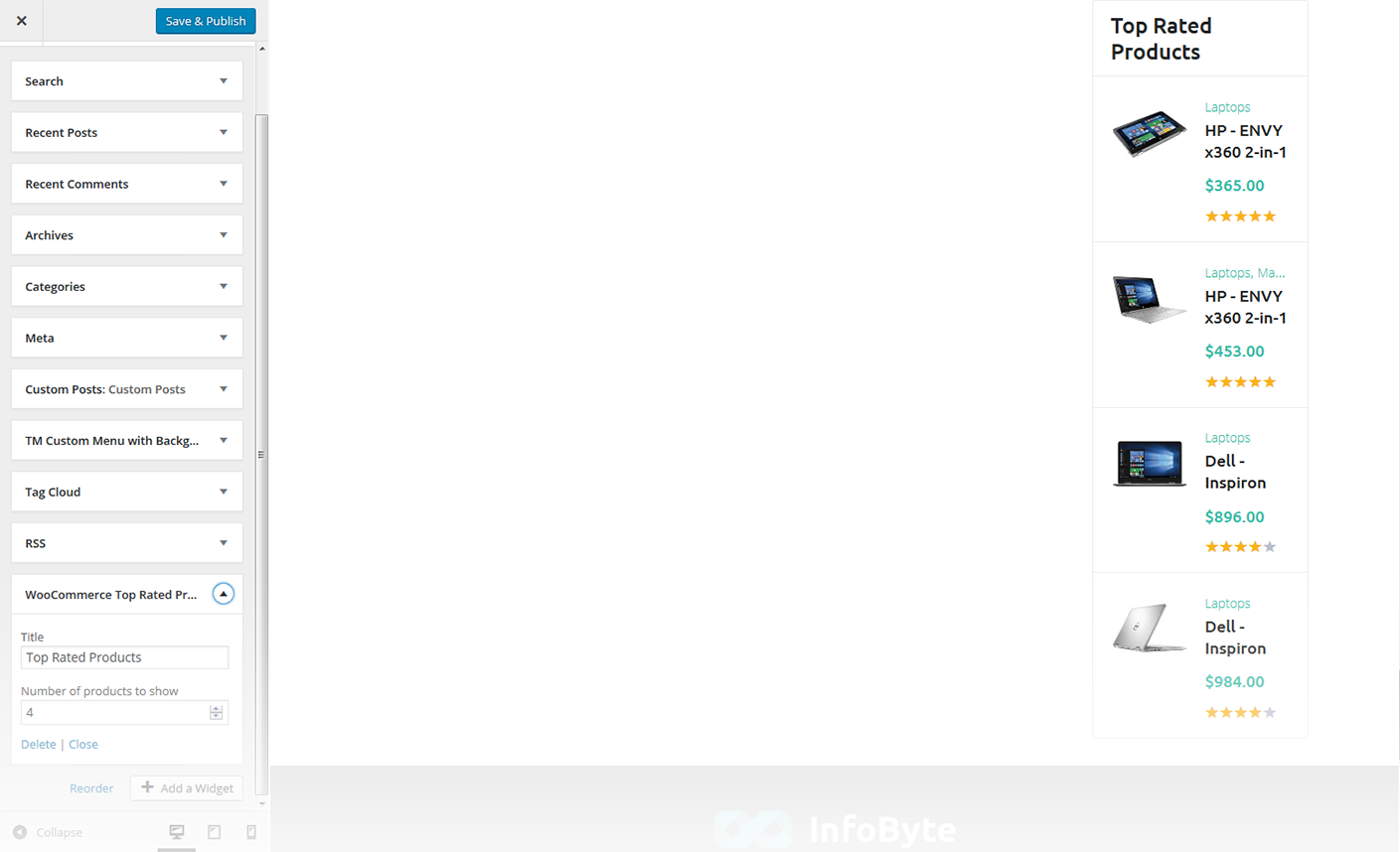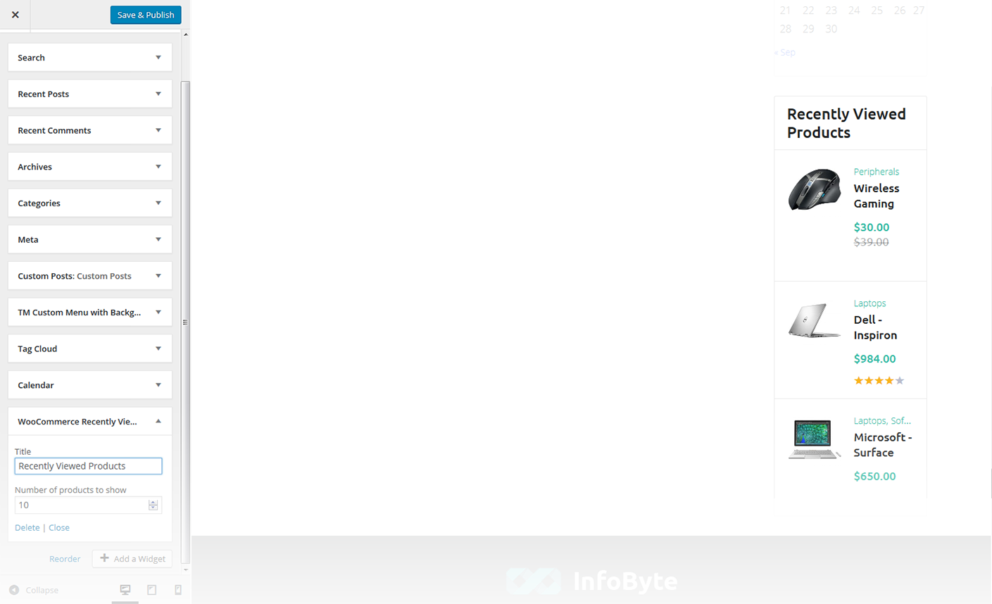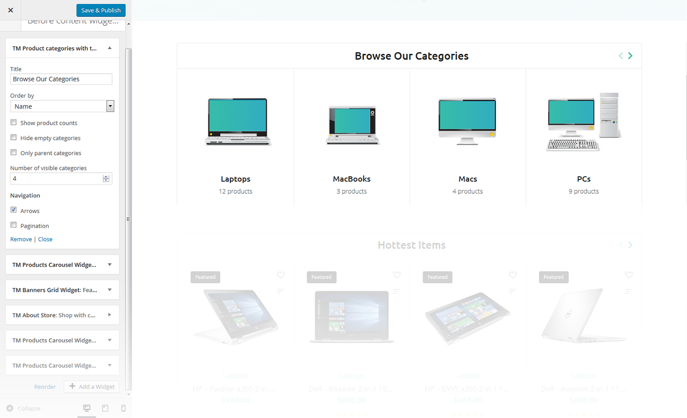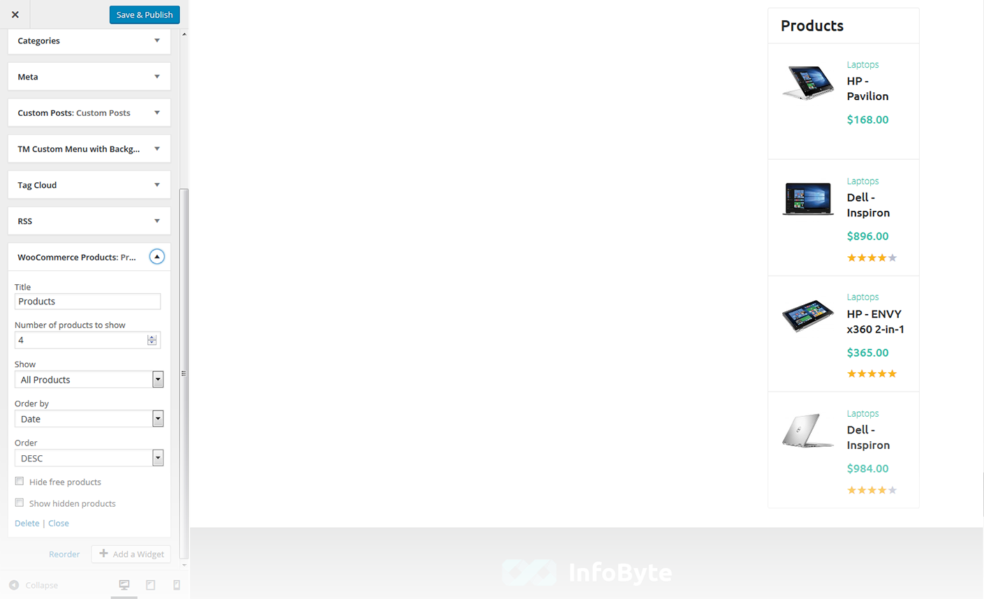 This widget displays the featured products from the particular categories offering the customers some extra products they might want to purchase as well