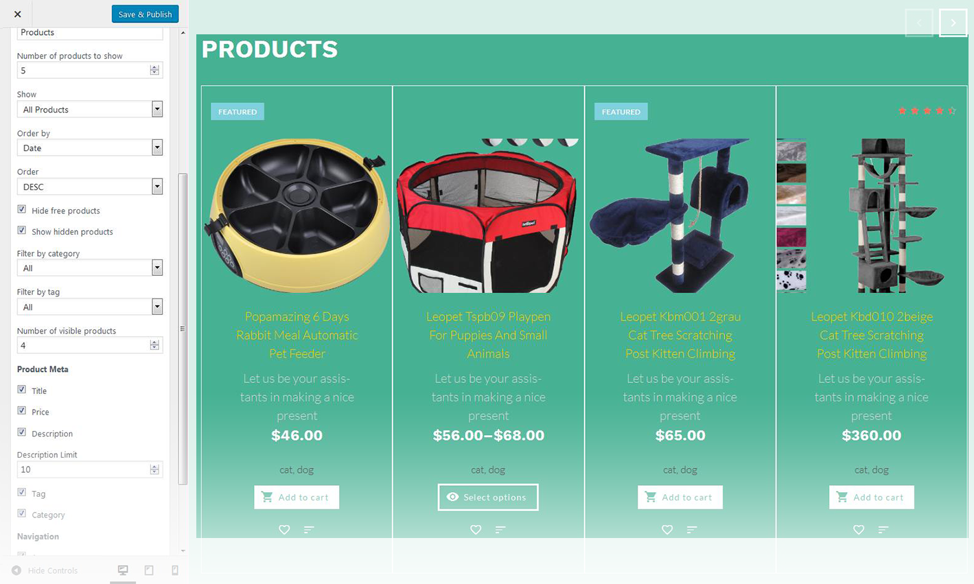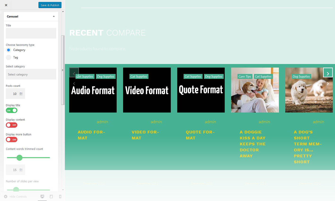 - Specify the number of products displayed in the carousel