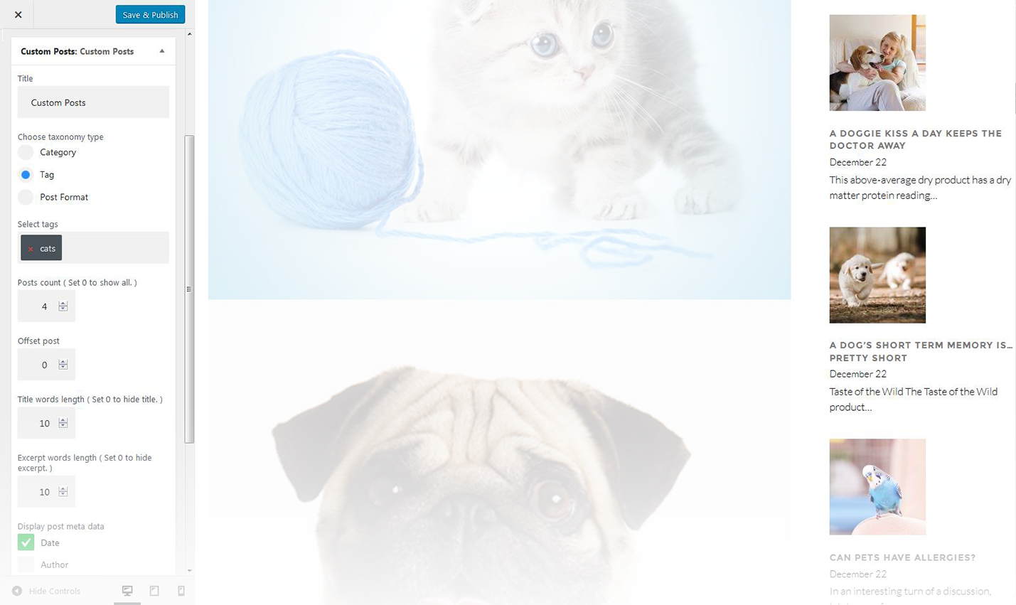 - You can select a user / author from a dropdown list to show on the page