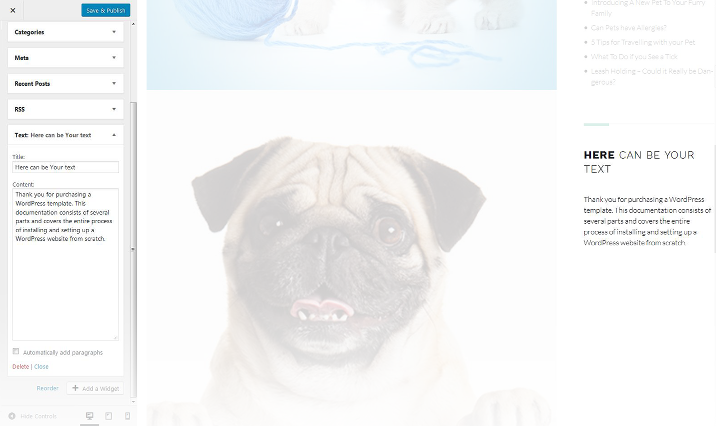 The widget allows you to display various text blocks, you can also use it to insert the shortcodes.