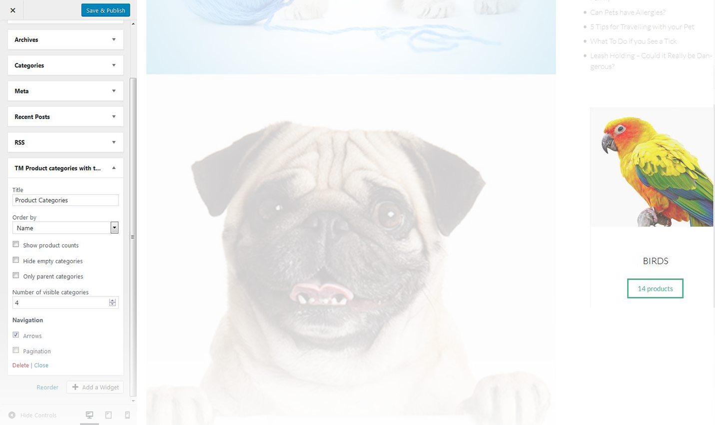 - This feature allows you to display the navigation arrows and pagination