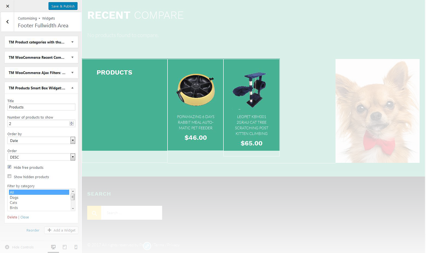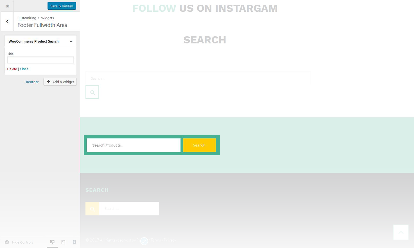 This widget displays the WooCommerce search box.