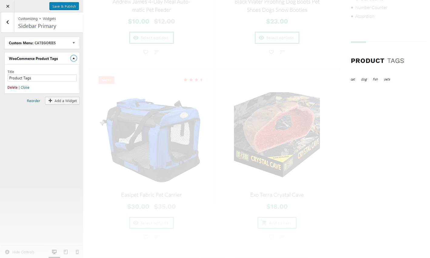 The widget allows you to display WooCommerce tag cloud on the website.