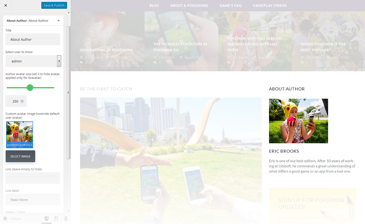 - You can select a user / author from a dropdown list to show on the page