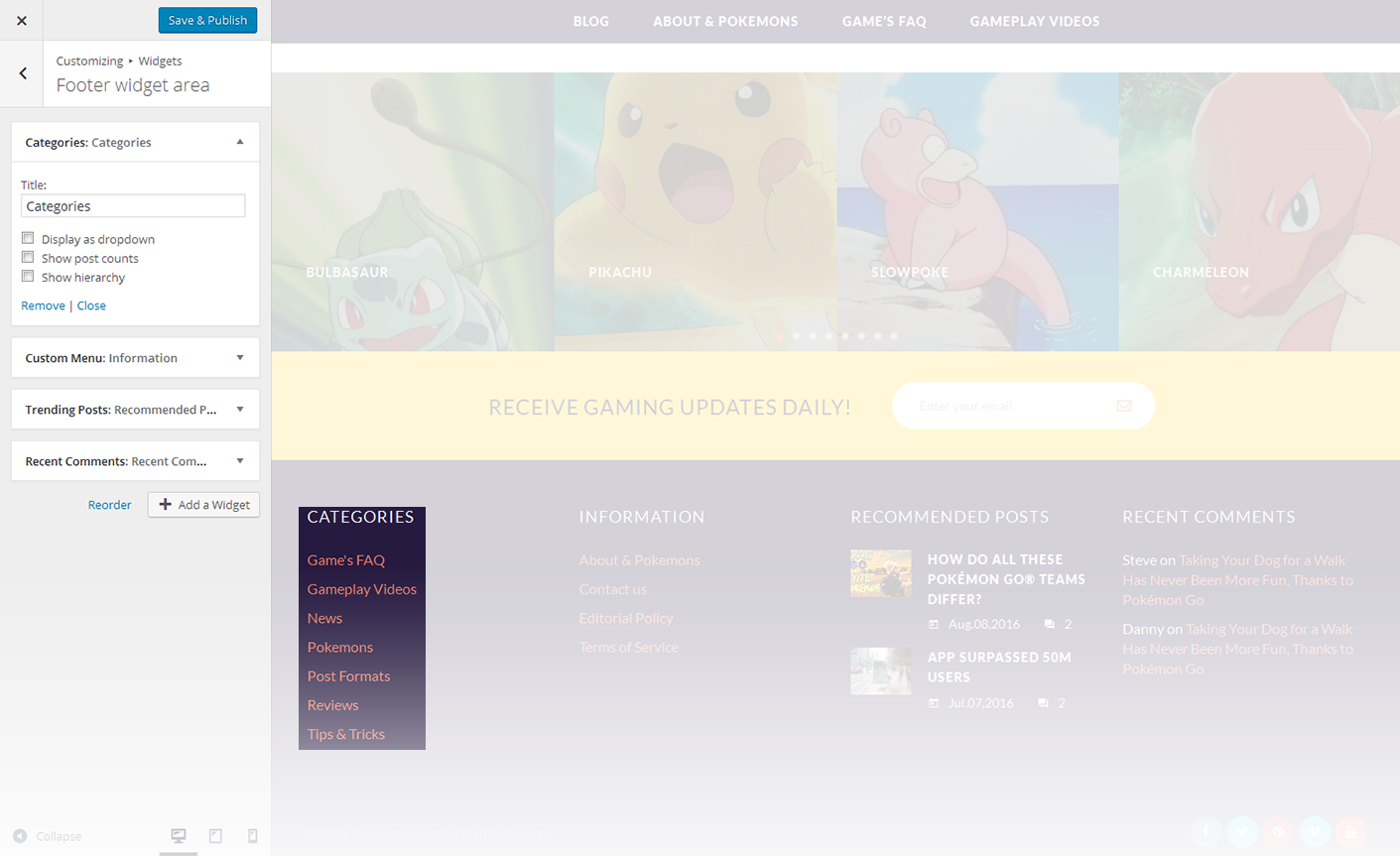 - Select category to pull the posts from