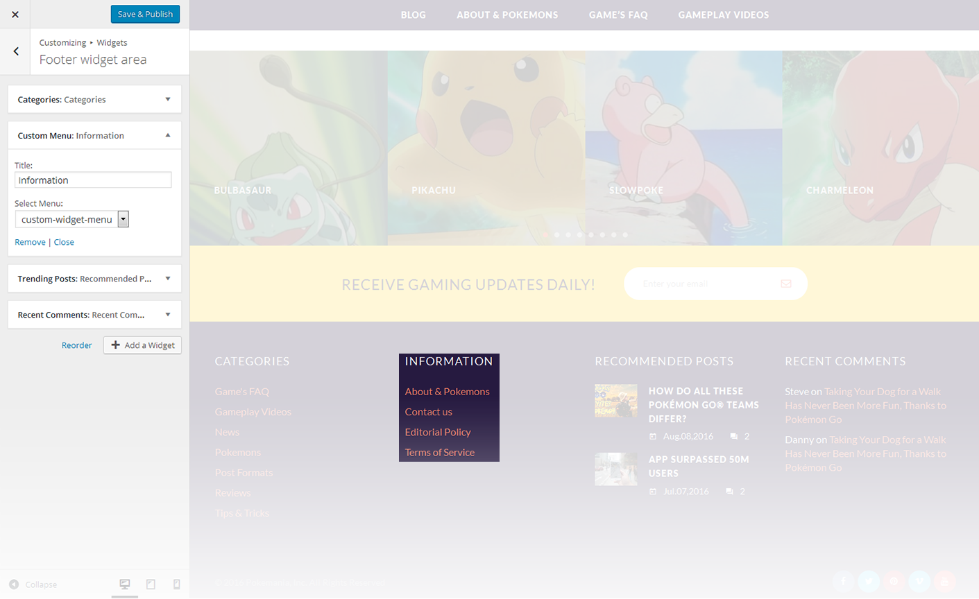 This widget is used to display the recent comments to the posts on the homepage.