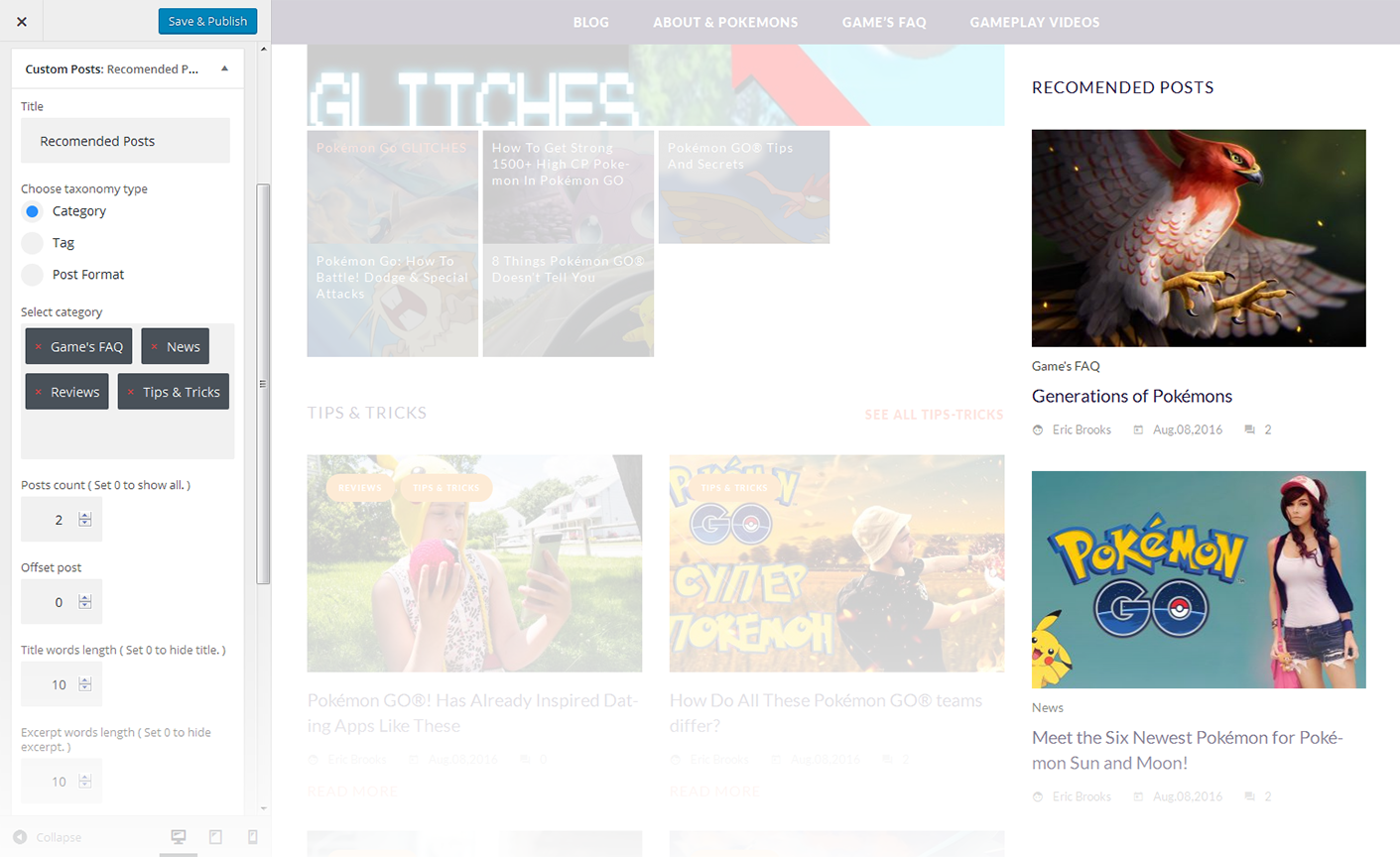 - Select the category from which the posts will be pulled