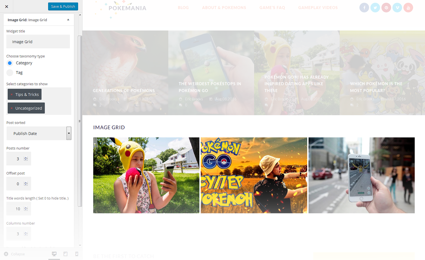 This widget is used to display the image grid. By default, you have to select an appropriate category or tags in order to start display