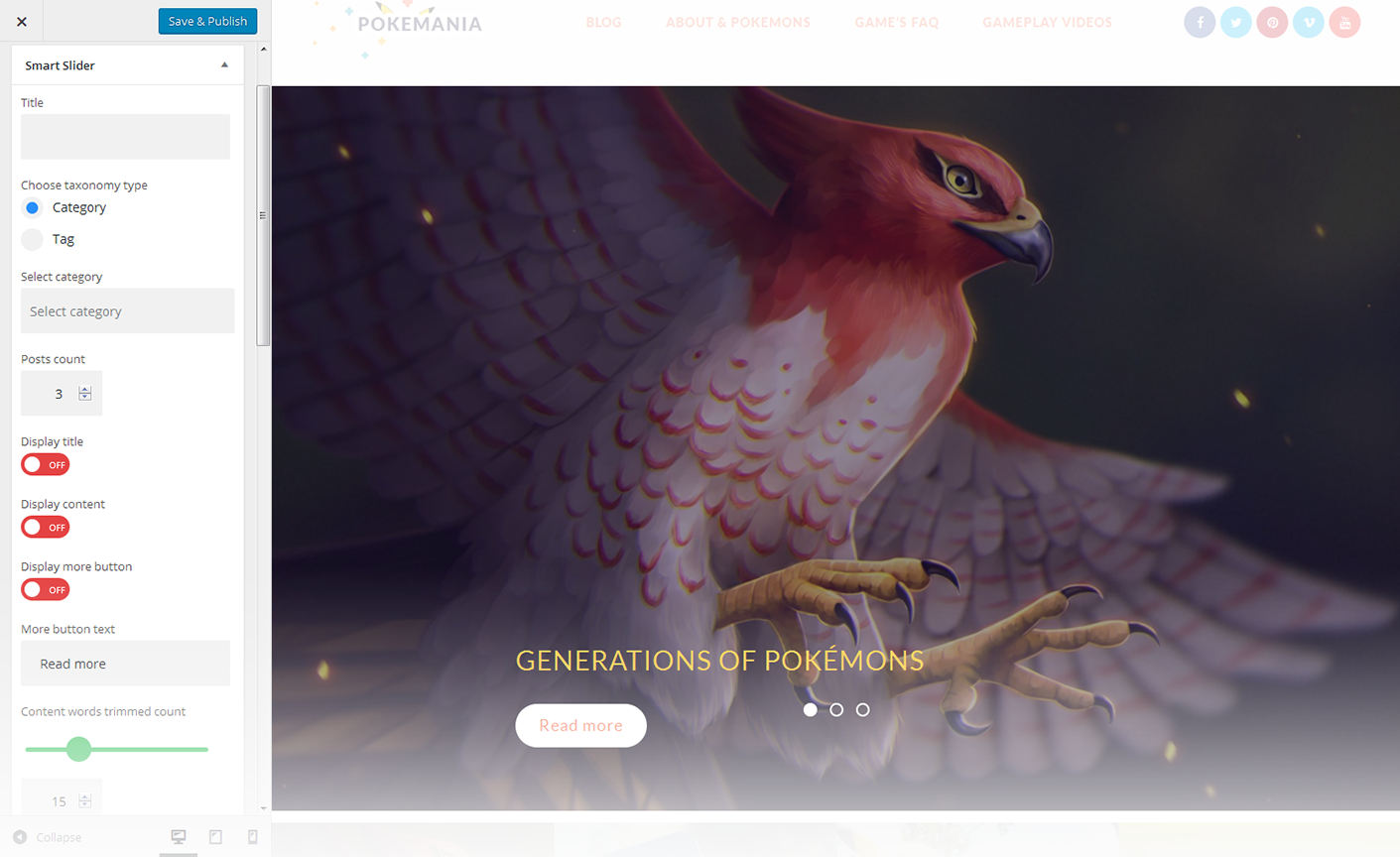 - Specify category or tag the posts will be pulled from