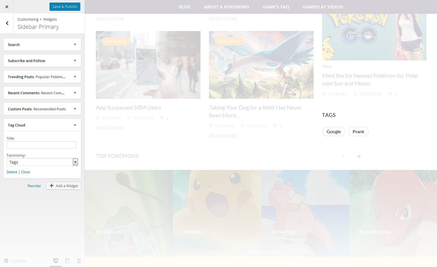 - Choose tags to display posts from