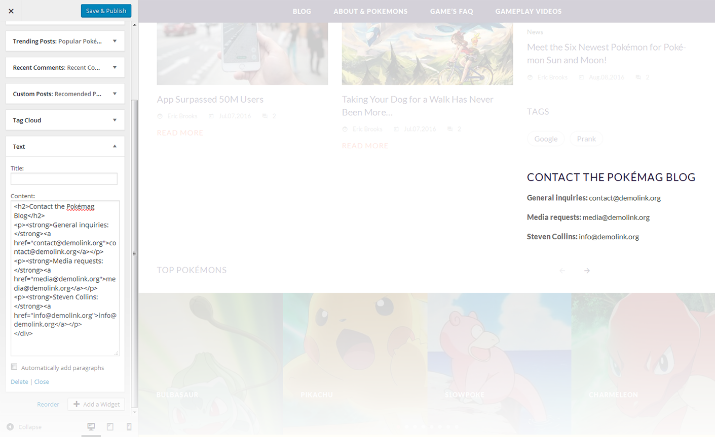 This widget is used to setup and display custom posts.