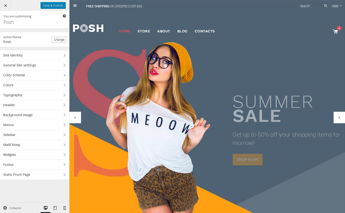 Then you can define the menu position and check the result with the help of the customizer tool.