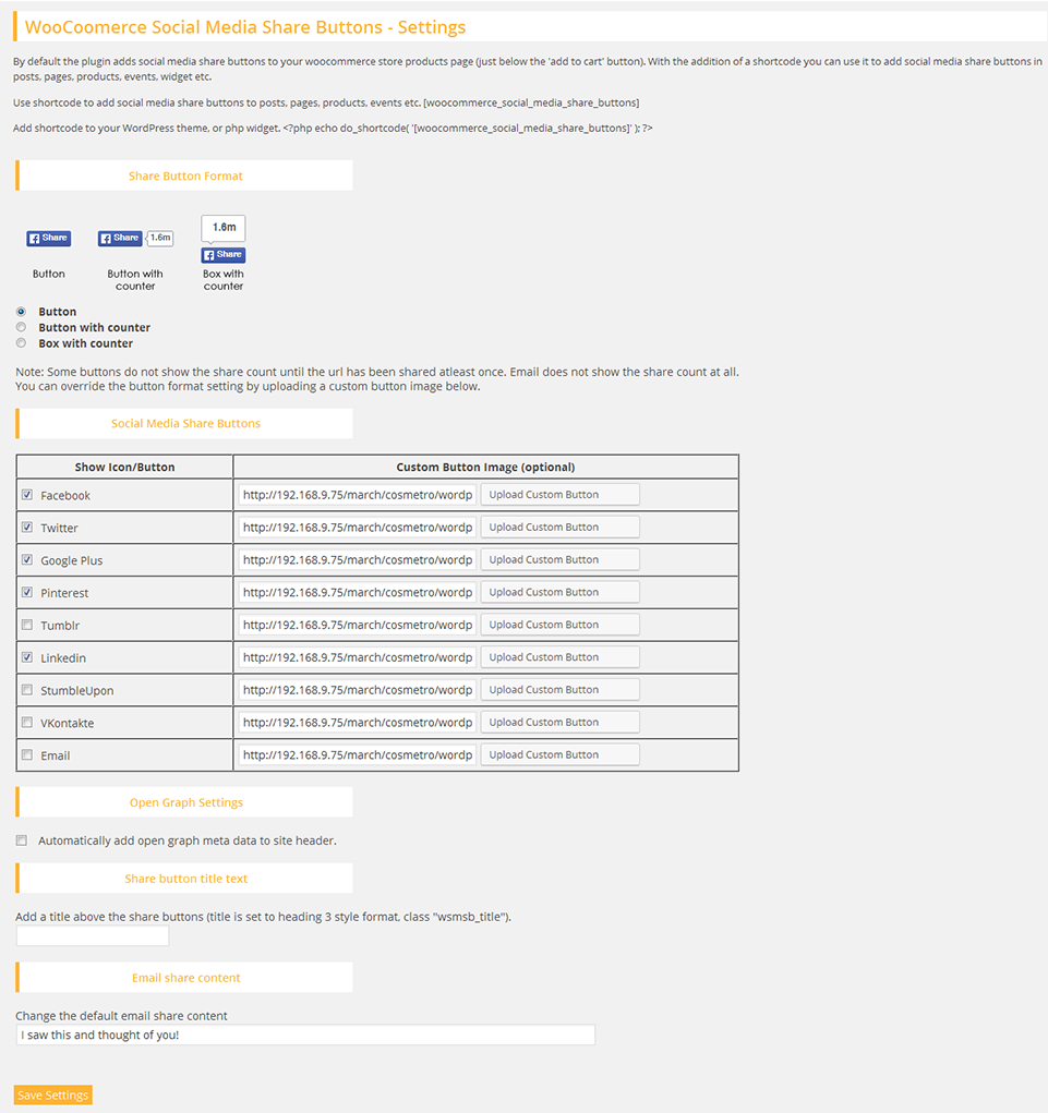 Add all kinds of social share buttons with the help of this Woocommerce Social Media Share Buttons plugin. The plugin is quite flexible and can be adjusted in accordance with specifictions of your store.