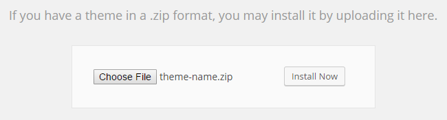 3. Locate the archive named as theme-name.zip and install the theme by pressing Install Now.