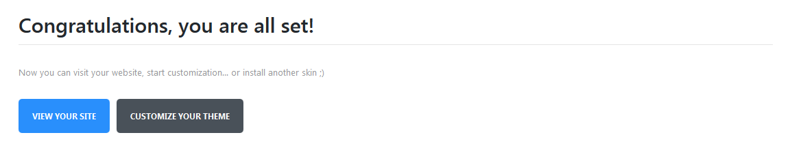 If you have entered the correct details, you will see a successful installation message and the WordPress dashboard access button.