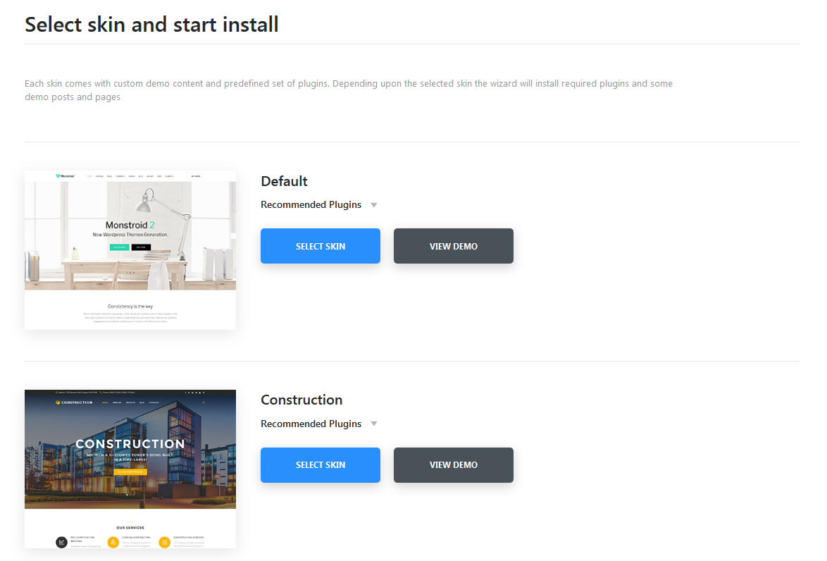 Then you have to select the skin and click on SELECT SKIN link. Also you can view demo.