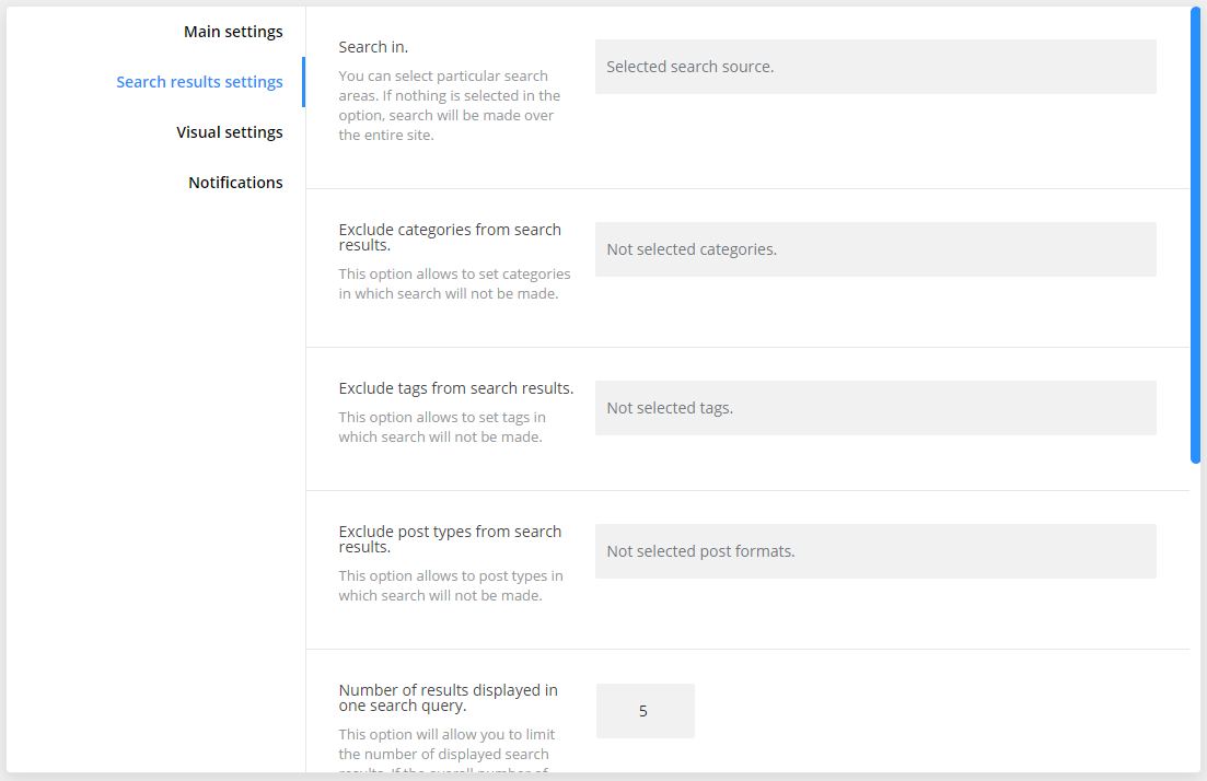 - this option will allow you to limit the number of displayed search results. If the overall number of results exceeds previous set limit, the "load more" button will come up;