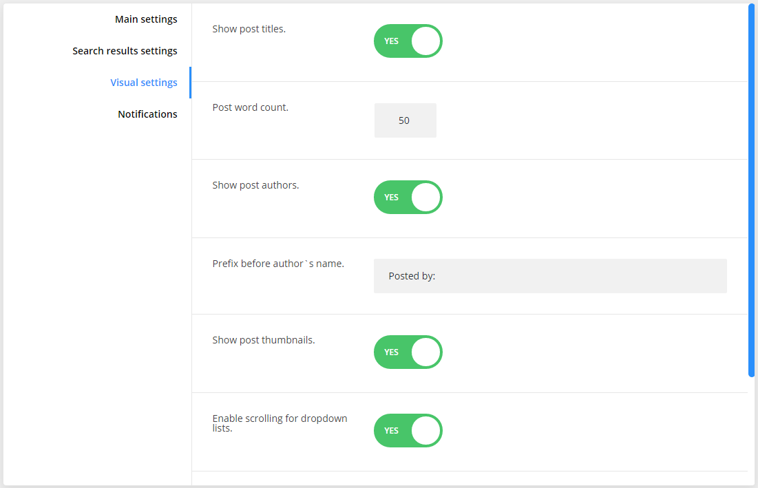 - enable disable scrolling for dropdown search results lists;