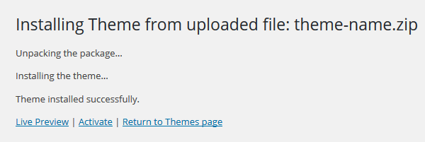 - Under the Available Themes section find theme-name and activate it by clicking the Activate button.