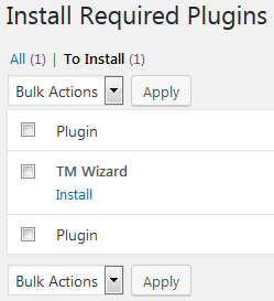 After theme activation you will get a notice which offers you to install TM Wizard plugin. To continue plugins and demo contents installation with TM Wizard just hit Begin installing plugin link. You will be transfered to the page where you can select the needed plugins.