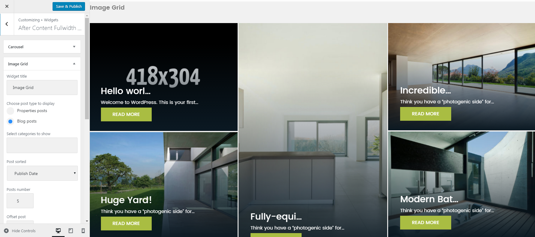 This widget is used to display the image grid. By default, you have to select an appropriate category or tags in order to display the grid.